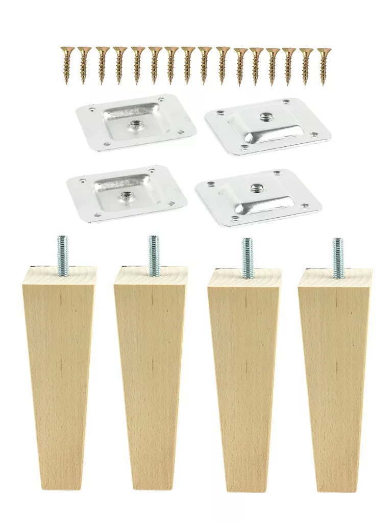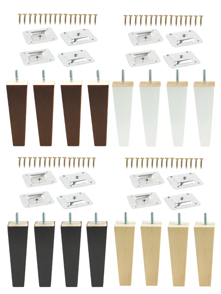- Noga drewniana piramidka 16 cm – 4 sztuki (kolory: naturalny, biały, brązowy, czarny)