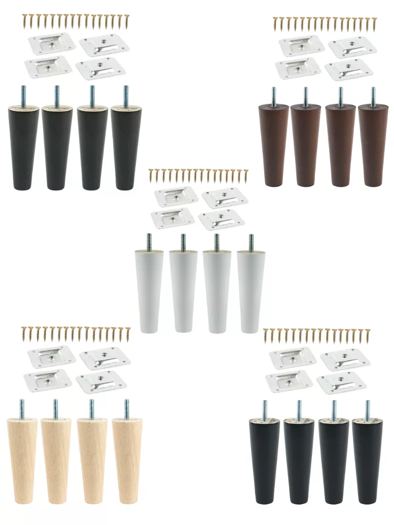 - Noga drewniana stożek 13 cm – 4 sztuki (kolory: naturalny, biały, brązowy, wenge, czarny)